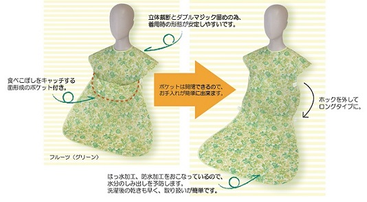 ホックをはずして、ロングタイプのエプロンとしても使えます。
